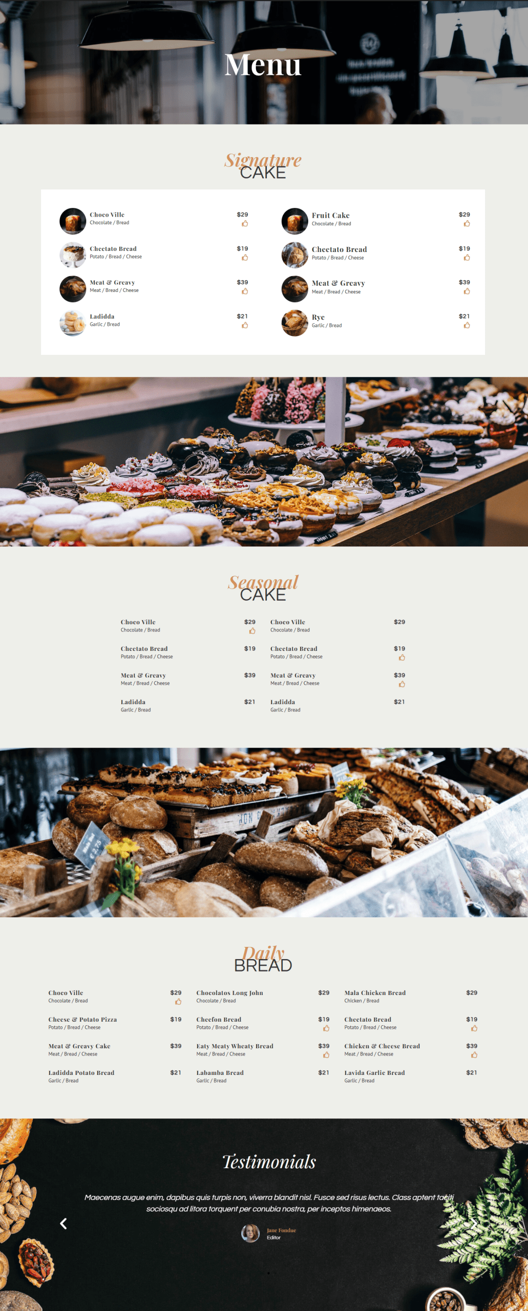 Desain web ini cara yang efektif untuk membuat situs web yang menarik dan menggugah selera bagi bisnis roti dan kue. Dilengkapi dengan elemen visual yang mengundang, seperti gambar produk yang menggoda, desain yang hangat, dan tata letak yang memudahkan navigasi. Fitur utama biasanya mencakup halaman menu interaktif, galeri foto untuk menampilkan berbagai jenis roti dan kue, sistem pemesanan online, serta informasi tentang bahan-bahan atau proses pembuatan produk